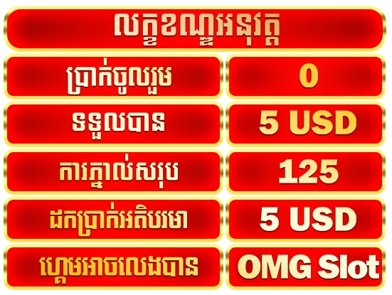 5.ការផ្តល់ជូនពិសេសនេះអាចលេងបាននៅហ្គេម OMG Slot តែប៉ុណ្ណោះ ។